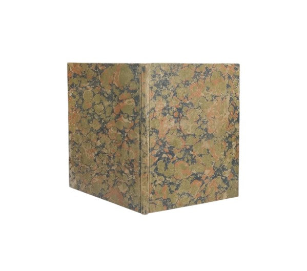 Legatura moderna con carta di recupero marmorizzata, tagli spruzzati in rosso