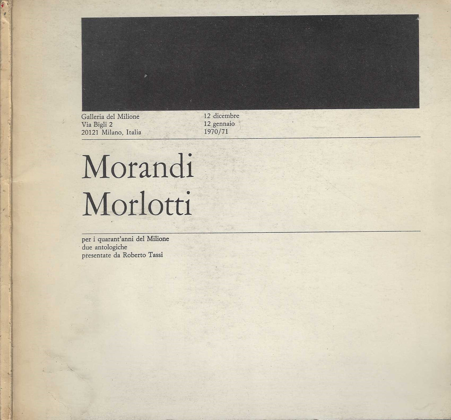 Catalogo della mostra tenutasi presso la Galleria del Milione dal 12 dicembre al 12 gennaio 1970/71*