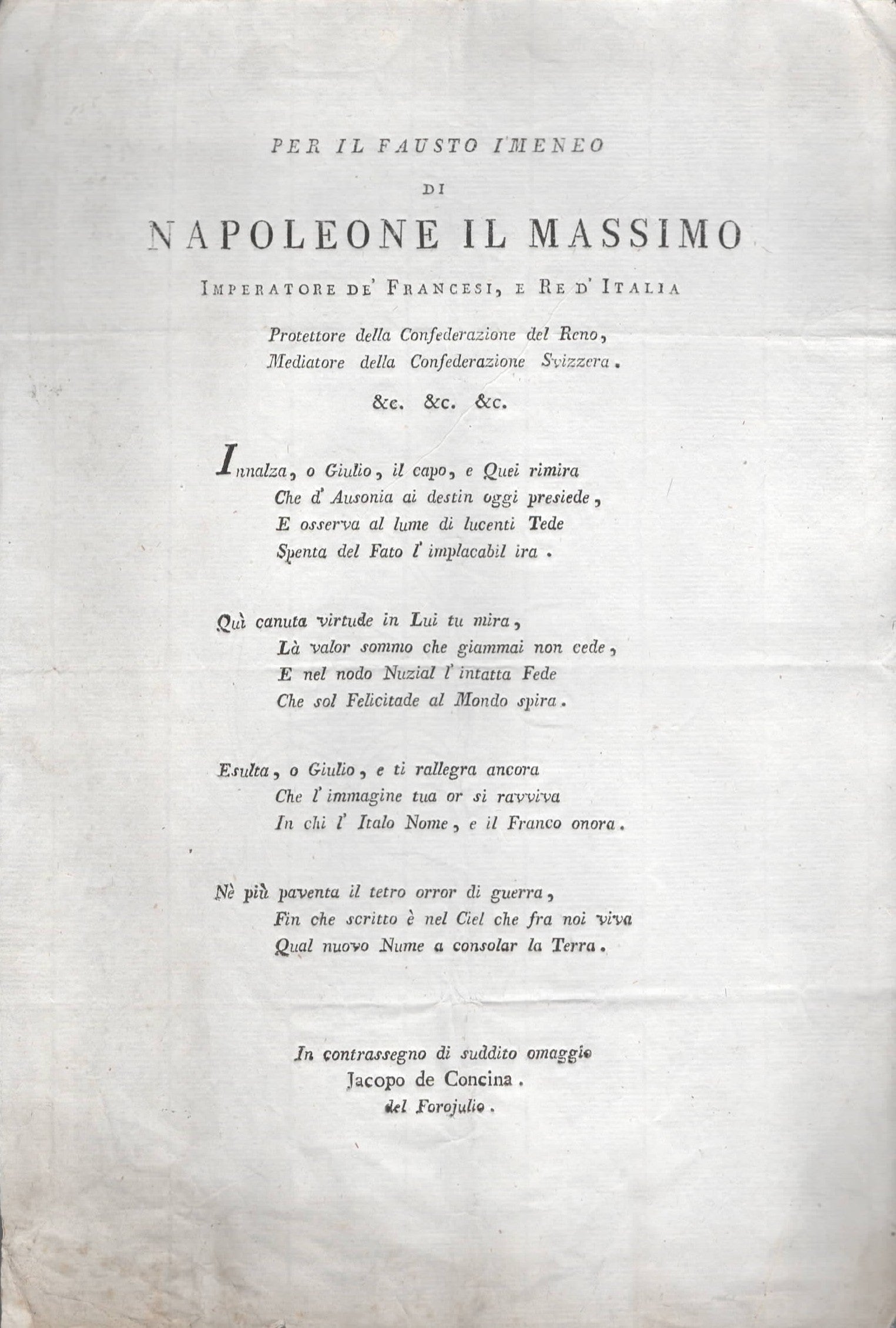 Per il fausto imeneo di Napoleone Il Massimo imperatore de' francesi e Re d'Italia |