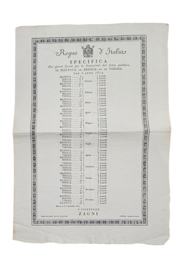 Specifica dei giorni fissati per l'estrazione del lotto 1814